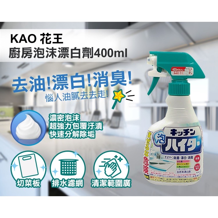 日本 花王kao 廚房 泡沫清潔劑 漂白劑 除菌 400ml